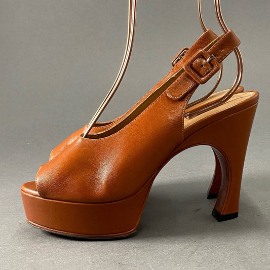 1f28 《美品》 DRIES VAN NOTEN ドリスヴァンノッテン オープントゥ レザーパンプス 37 ブラウン Leather サンダル ハイヒール イタリア製 シューズ