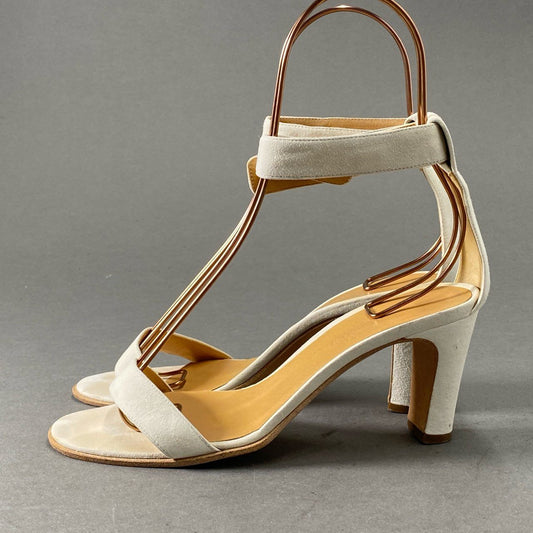 1f28 HERMES エルメス アンクルストラップ ヒールサンダル 35 1/2 ホワイト スウェードレザー パンプス シューズ イタリア製