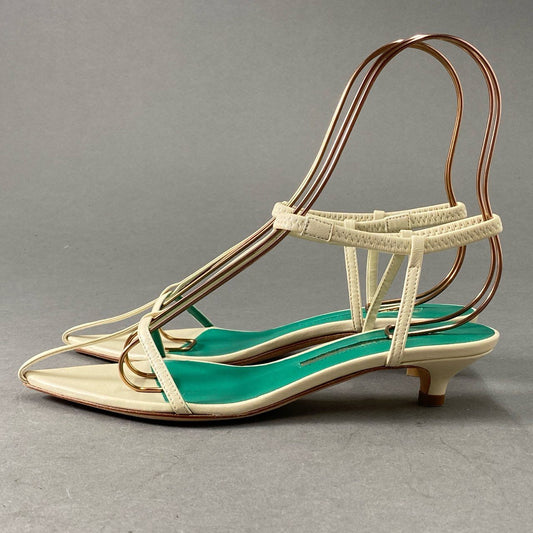 1f28 《美品》 定価¥46,200 BRENTA ブレンタ ANKLE GOM アンクルゴムストラップサンダル 36 ホワイト グリーン レザー イタリア製 シューズ