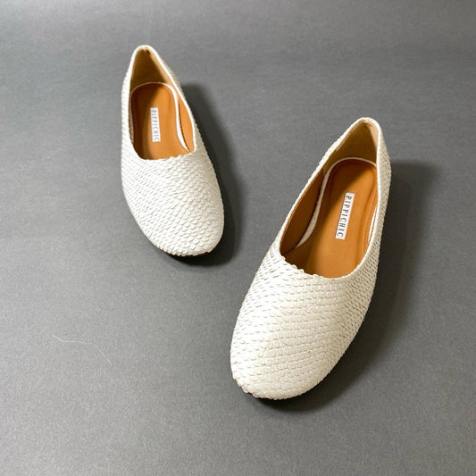 3f29 PIPPICHIC ピッピシック OKEEFE PYT フラットシューズ 36 1/2 ホワイト レザー 日本製 パイソン