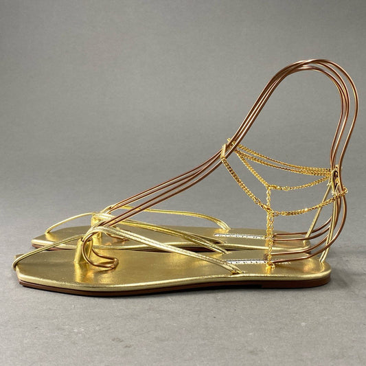 5f28 《美品》 PIPPICHIC ピッピシック チェーン レザーフラットサンダル M ゴールド leather 日本製 シューズ