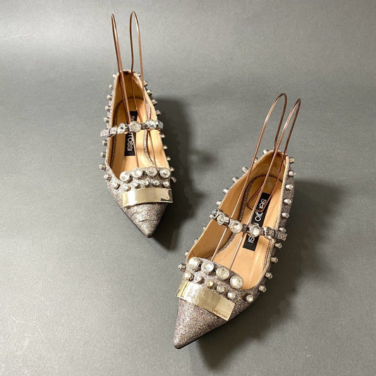 1f29 sergio rossi セルジオロッシ グリッター ビジュー フラットパンプス 37 ピンク系 ラメ シューズ スパンコール イタリア製