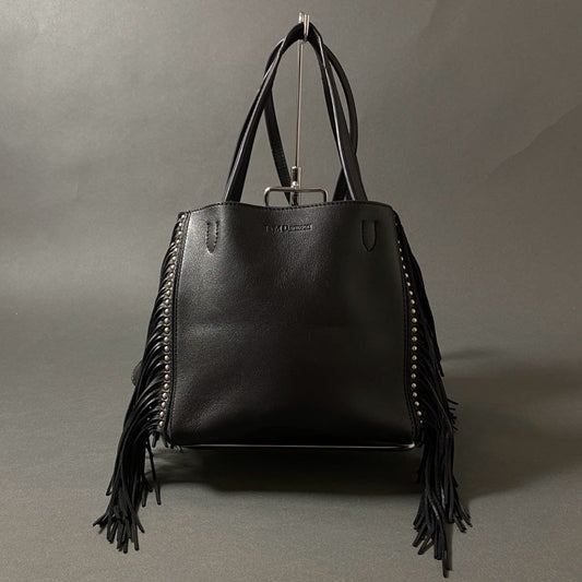 Df29 J&M DAVIDSON ジェイアンドエム デヴィッドソン 2WAY スタッズ × フリンジショルダーバッグ ハンドバッグ ブラック レザー