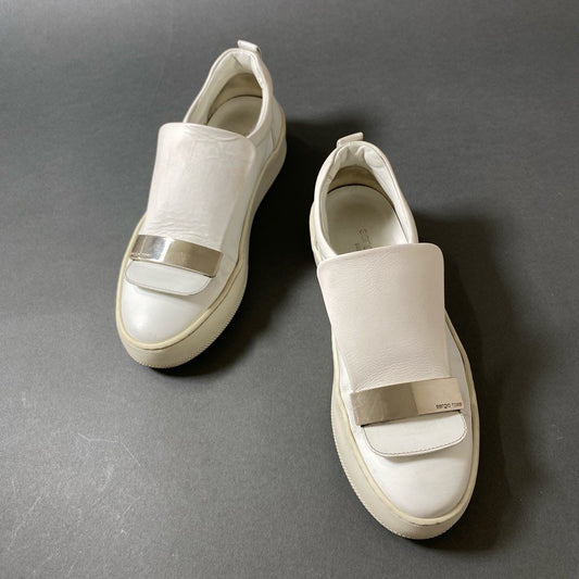 2f29 sergio rossi セルジオロッシ SR1 Addict スリッポンスニーカー 37 ホワイト レザー メタリックプレート シューズ イタリア製
