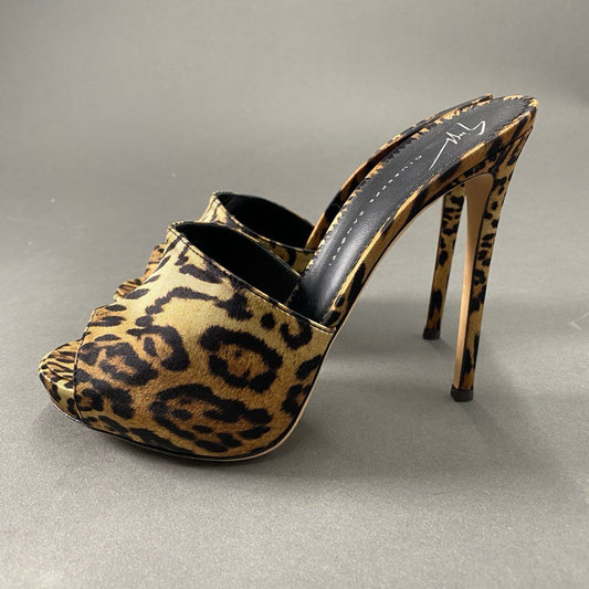 4b24 《美品》 Giuseppe Zanotti ジュゼッペザノッティ イタリア製 レオパード柄 ピンヒール ミュール オープントゥ パンプス サンダル シューズ 36 1/2 ブラウン系 MADE IN ITALY