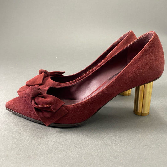 3b24 イタリア製 Salvatore Ferragamo サルヴァトーレフェラガモ ヒールパンプス ハイヒール フラワーチャンキーヒール 7D ワインレッド リボン レディース
