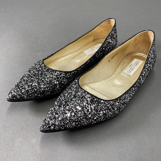 4b24 JIMMY CHOO ジミーチュウ イタリア製 グリッター フラットシューズ パンプス スパンコール 37 ブラック シルバー MADE IN ITALY