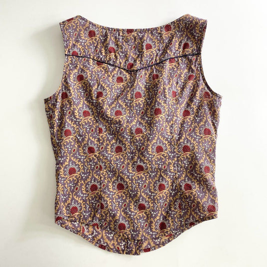 26b25 miu miu ミュウミュウ イタリア製 総柄 ベスト ジレ ノースリーブ カットソー ブラウス 38 パープル マルチカラー コットン MADE IN ITALY