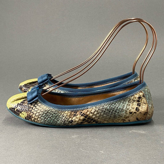 4b28 Salvatore Ferragamo サルヴァトーレフェラガモ イタリア製 フラット パンプス シューズ バレエシューズ 5 1/2 マルチカラー パイソン型押し MADE IN ITALY