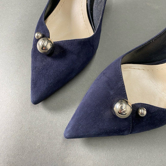 4b24 Christian Dior クリスチャンディオール イタリア製 ヒール パンプス シューズ ポインテッドトゥ CDロゴ 37 ネイビー スエード MADE IN ITALY