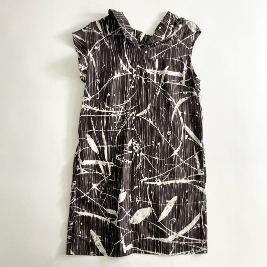 53b25 MARNI マルニ シルク100% ノースリーブワンピース 38 ブラウン フリル ドレス イタリア製 フリル