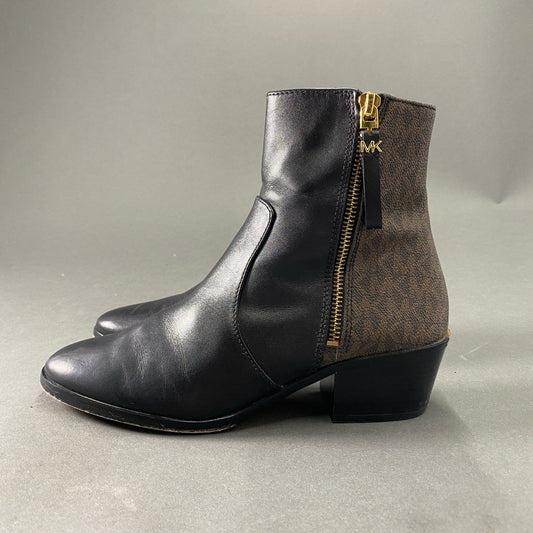2b24 MICHAEL KORS マイケルコース サイドジップブーツ ヒールブーツ シューズ ジップアップ モノグラム柄 7M ブラック ブラウン レザー PVC