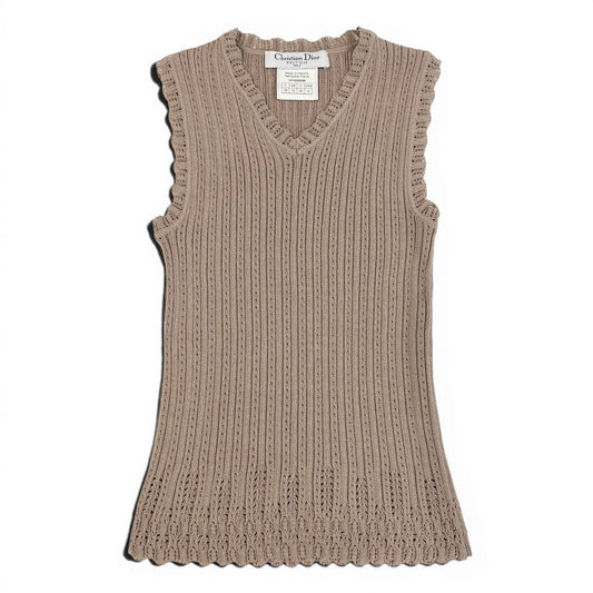 Ed21 Christian Dior クリスチャンディオール ガリアーノ期 ノースリーブVネックニットセーター コットンシルク トップス 1P13055058 38サイズ ベージュ レディース 女性用nu1