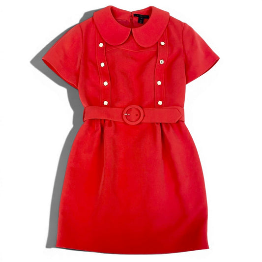 Ed21 LOUIS VUITTON ルイヴィトン ベルテッドワンピース LVロゴボタン 半袖ドレスワンピース イタリア製 RW201B HZL FIRO50 38サイズ レッド レディース 女性用nu1