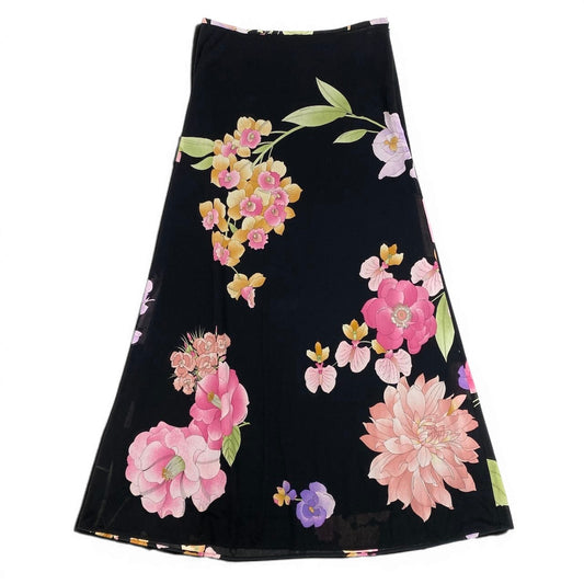 Ed21 LEONARD レオナール ロングスカート 美しい花柄プリント シアー素材 0142510 64サイズ ブラック マルチカラー レディース 女性用t18r