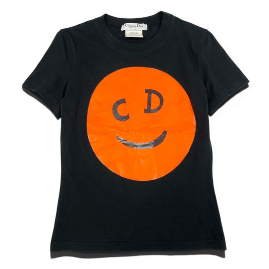 Ed21 Christian Dior クリスチャンディオール 半袖Tシャツ CDスマイル ガリアーノ期 トップス 1H12055022 36サイズ ブラック オレンジ コットン100% レディース 女性用nu1