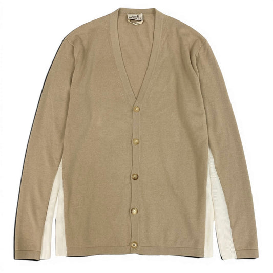 Ed21 HERMES エルメス コットンカシミヤニットセーター Vネック サイドライン イタリア製 XLサイズ ベージュ ホワイト メンズ 男性用t18r