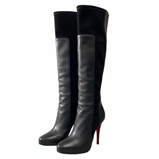 2d21 《極美品》 Christian Louboutin クリスチャン ルブタン YSA 100 ロングブーツ サイズ36 1/2 ブラック レザー シューズ Leather Long Bootst18r