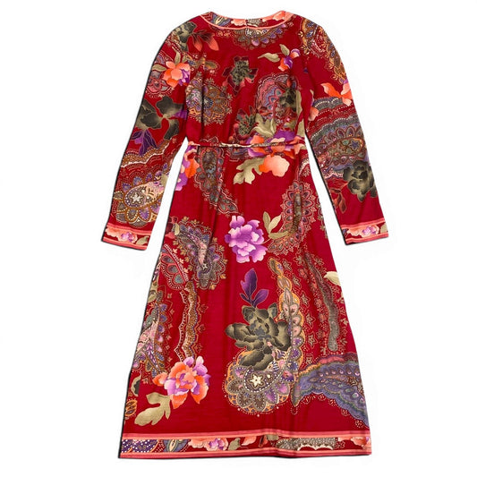 Ed21 LEONARD レオナール 長袖ワンピース コットンウール 総柄 0320117 Lサイズ レッド系 レディース 女性用t18r