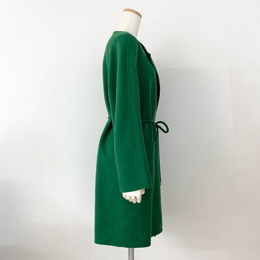 54h10 Max Mara STUDIO マックスマーラ ステュディオ Cucito a mano クチートアマーノ シルク カシミヤ混 ロングコート ベルト付 42 グリーン