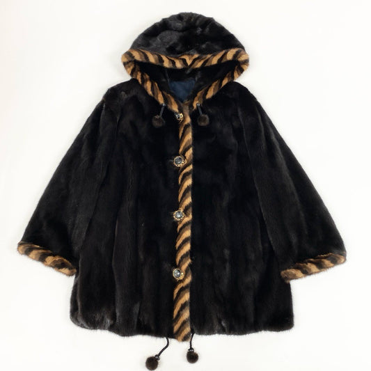 2b16 希少デザイン ダークミンク フード付き リバーシブルコート サイズ44 ブラウン 本毛皮 Mink Fur Coatt18r
