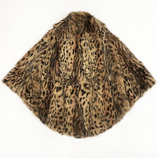 50b16 METEO レオパード柄 ラビットファー ケープポンチョ サイズ36 茶系 本毛皮 フランス製 Rabbit Fur Capet18r