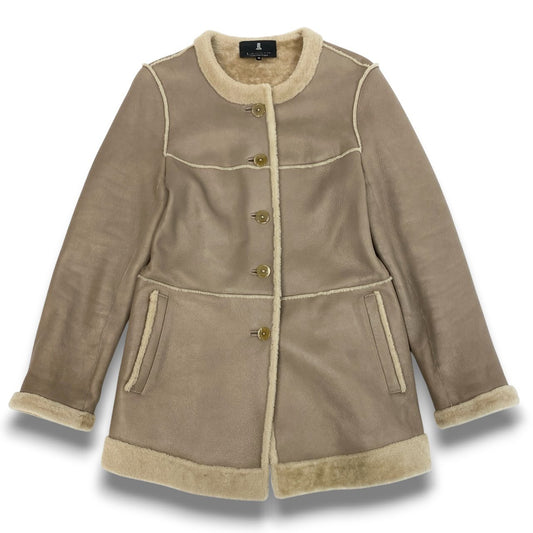11b20 LANVIN COLLECTION ランバン コレクション ムートンコート レザーコート スペイン製ラム 38 グレージュ 羊革 レディースu02t