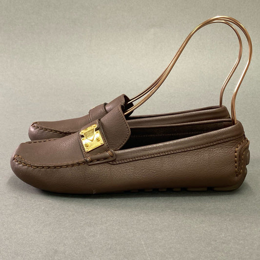 2l4 LOUIS VUITTON ルイヴィトン LV ドライビングシューズ ローファー 36 1/2 ブラウン レザー ゴールド イタリア製 靴