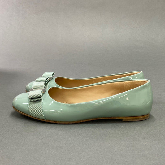 4a9 Salvatore Ferragamo サルヴァトーレ フェラガモ VARINA ヴァリナ エナメルフラットパンプス 7 1/2 Lucky Charme パテントレザー VARA ヴァラリボン シューズ