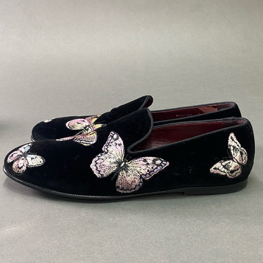 8b14 DOLCE&GABBANA ドルチェアンドガッバーナ バタフライ刺繍 オペラシューズ 7 ブラック ベロア 蝶 スリッポン ローファー D&G ドルガバ イタリア製