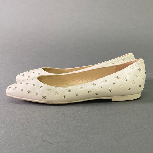 7a22 JIMMY CHOO ジミーチュウ JC スタースタッズ フラットパンプス 37 ホワイト レザー スペイン製 シューズ 靴