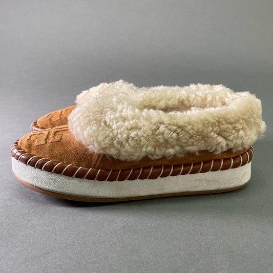 9a8 TORY BURCH トリーバーチ ムートンシューズ シアリングスリッパ スリッポン 6 1/2M ブラウン ベージュ スエードレザー ボア 靴
