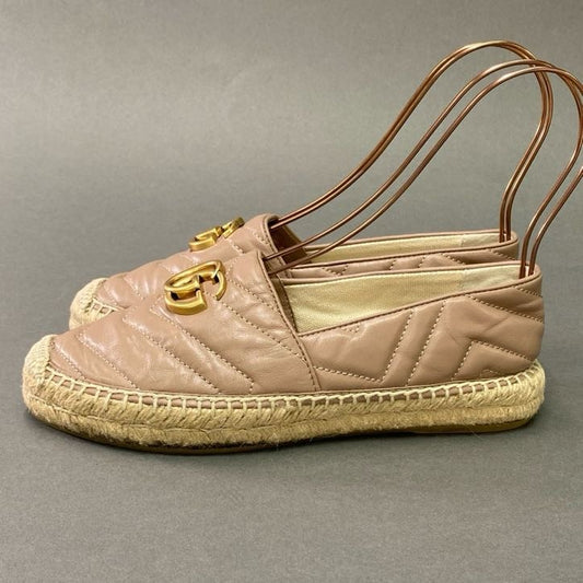 5l22 GUCCI グッチ GGマーモント エスパドリーユ レザースリッポン 36 ピンク Leather スペイン製 シューズ