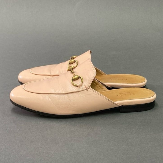 3l22 GUCCI グッチ ホースビット ミュールサンダル 36 1/2 ピンク レザー プリンスタウン フラットシューズ イタリア製