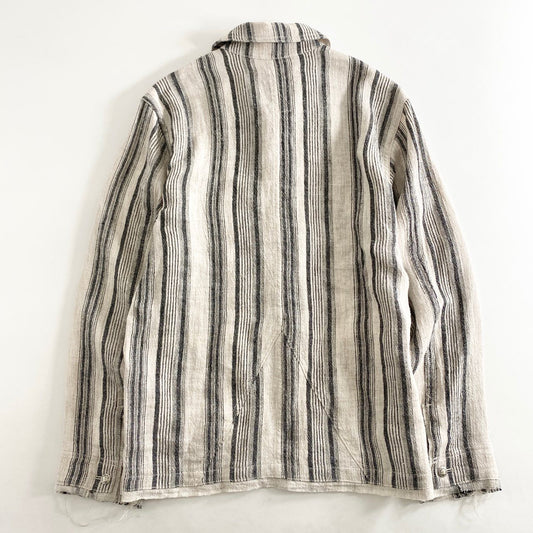 40h8 《美品》 Leh レー 日本製 B.D COVERALL ボタンダウンカバーオール ジャケット ストライプ柄 LEH 842 M ベージュ リネン シルク