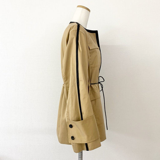 45g12 《美品》 定価79,200円 CINOH チノ ドゥーズィーエムクラス取扱 ノーカラーパイピングジャケット サイズ38 ベージュ レディース