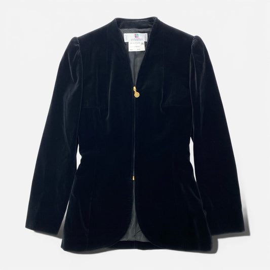 86a15 【Vintage 90'S】GIVENCHY ヴィンテージ ジバンシー ウエストシェイプデザイン ベロアジャケット サイズ36 ブラック レディース 女性用k02i