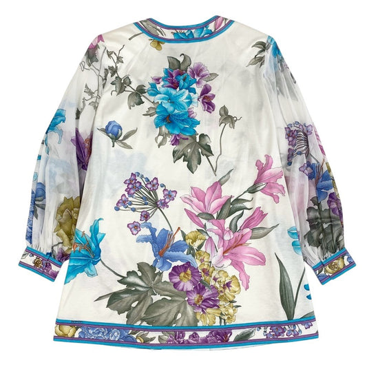 13l27【未使用品】LEONARD レオナール ノーカラージャケット 美しい花柄プリント 袖シアー素材 チュニック丈 Mサイズ ホワイト レディースk02i