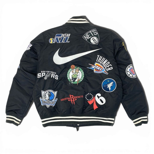 13l27 NIKE Supreme ナイキ × シュプリーム NBA Teams Warm-Up Jaket スタジャン ジャケット ワッペン Mサイズ ブラック メンズo07t