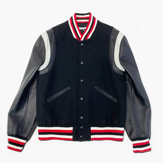 67a24 《美品》 GIVENCHY ジバンシー レザー切替 スタジャン サイズ50 ブラック レッド ボンバージャケットt18r