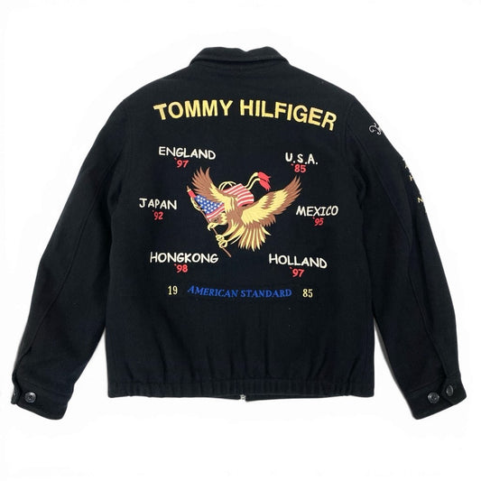 40l25《30着限定品》 TOMMY HILFIGER トミーヒルフィガー Limited Edition 8/30 ツアー スーベニアジャケット M ブラック 日本製 激レアt18r