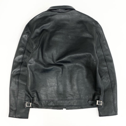 52d10 BLACK MARKET ブラックマーケット シングルライダースジャケット レザージャケット ブルゾン 44 ブラック カウレザー 牛革