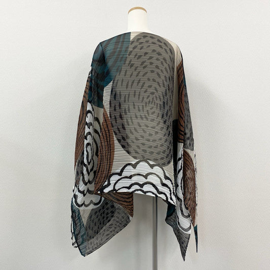 36a7 【美品】 PLEATS PLEASE プリーツプリーズ イッセイミヤケ 変形トップス ポンチョ ジオメトリックプリント チェック柄 PP03-FK363 マルチカラー レディース 女性用k02i
