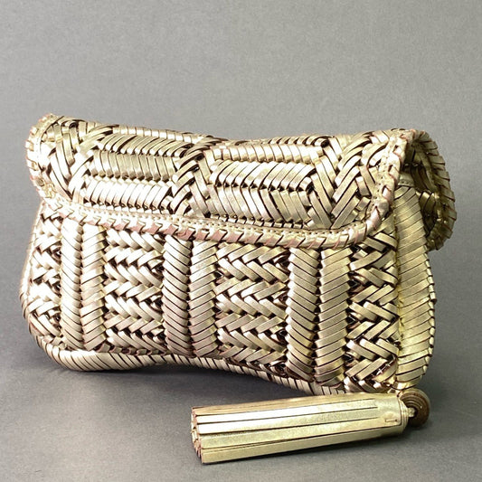 Dl9 ANYA HINDMARCH アニヤハインドマーチ 編み込み クラッチバッグ ゴールド レザー 結婚式 セレモニー パーティ ポーチ カバン