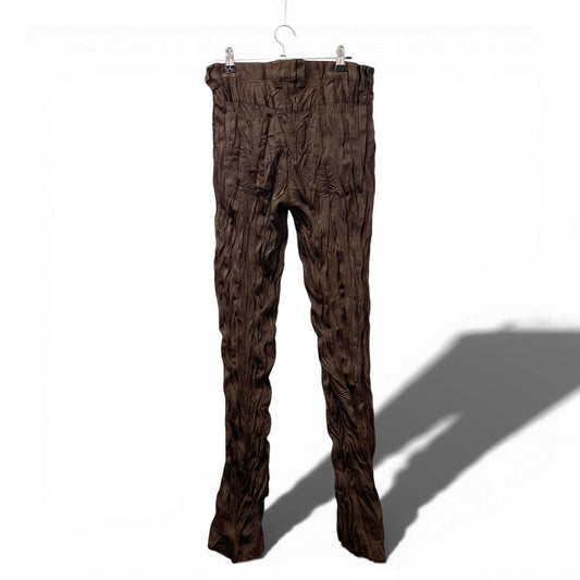 Ab13 ISSEY MIYAKE イッセイミヤケ プリーツスラックスパンツ ボトムパンツ プリーツ加工 IM74-FF618 Mサイズ ブラウン ポリエステル100% メンズ 男性用u02t