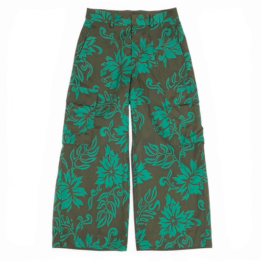 Aa14 sacai サカイ 24-07056 2024SS ハイビスカス ワイドレッグ カーゴパンツ サイズ2 ブラウン/グリーンk02i