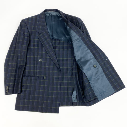 30h29 GIANNI VERSACE ジャンニヴェルサーチ スーツセットアップ ダブルスーツ テーラードジャケット スラックス イタリー製 46サイズ ネイビー系 メンズ 男性用