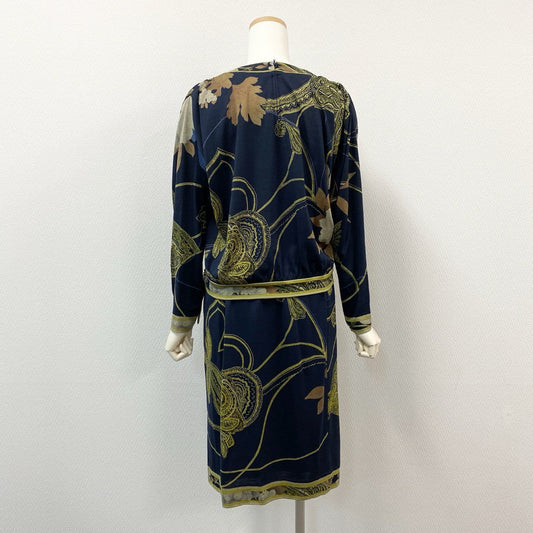 78i11 LEONARD レオナール 2点セット ハイゲージ 長袖ニット スカート セットアップ L ネイビー ウールシルク レディースu02t