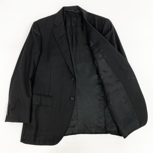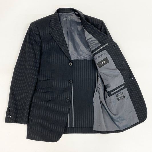 83i3 BURBERRY バーバリー セットアップスーツ テーラードジャケット スラックスパンツ ストライプ ビジネス フォーマル 40 ブラック ダークグレー メンズo07t