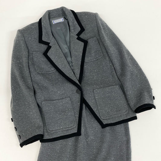 75i8 Yves Saint Laurent イヴサンローラン テーラードジャケット スカート セットアップ ニットジャケット ブレザー Mサイズ グレー ウール レディースo07t
